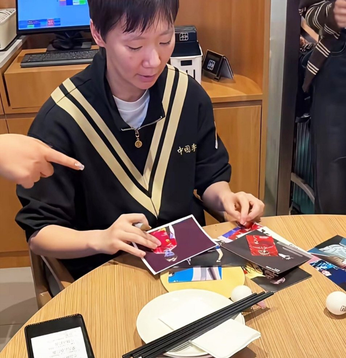 王曼昱陈幸同陈熠聚餐,这几个人就王曼昱拿到的奖金高,亚军拿到5万美元,冠军有10万美元。国乒的老习惯,谁赢谁请客。除了这三人外还有徐奕,另外两个没认出来。等待上菜的空档,王曼昱和陈幸同还给球迷签名。